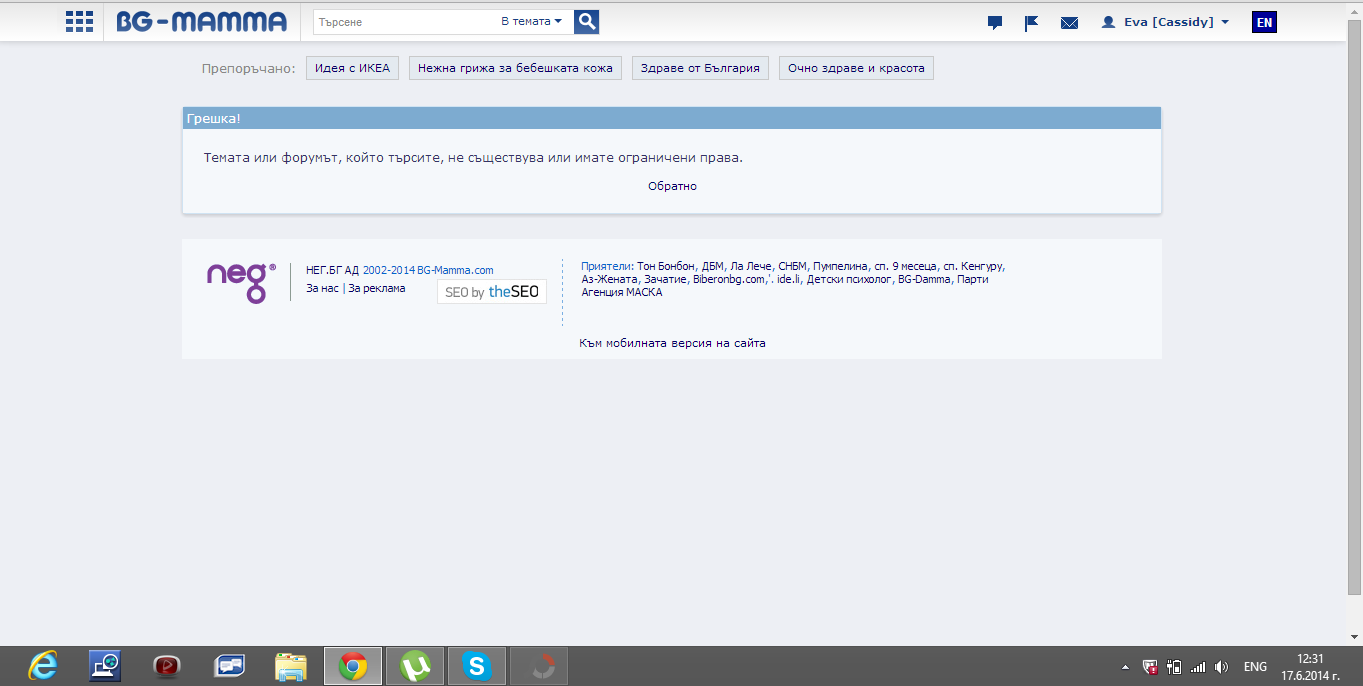 При мен има такъв проблем : виждам нещо в интересни теми, натискам и ми дава грешка-не мога да чета темата. Пробвах много пъти, не и не ... Не разбирам защо  ooooh!