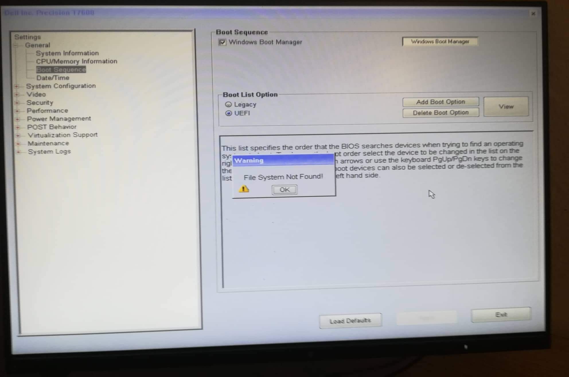 При напискате на Add boot options изписва горната снимка - File system not found. Качен е 10-ка от флашка, форматирана в GTP
