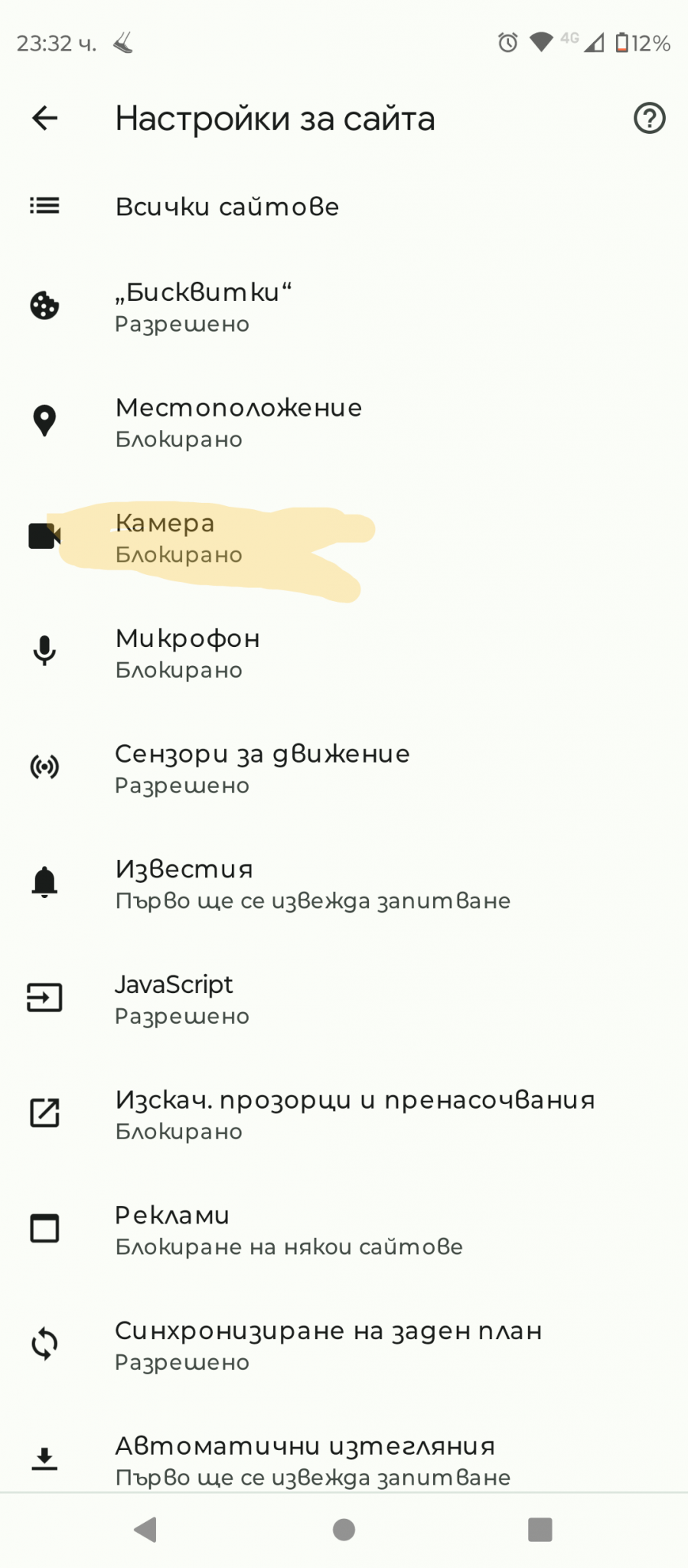 Вероятно от настройките на браузъра е забранен достъпа до камерата за този сайт или глобално.