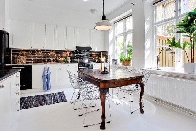 Иначе, размишлявам между иноксов и черен метален, че искам вече и малко черно да вкарвам в интериора. Засега мисля черни да са корнизите, лампите и трапезните столове. Всичко останало е сиво, дъб и бяло.