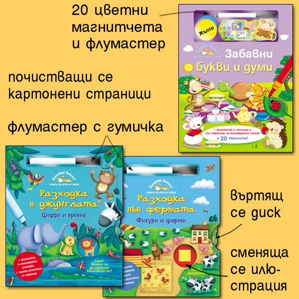 •  упражняват буквите, цифрите, броенето, разпознаването на ляво-дясно, ориентирането в пространството, усета за време;