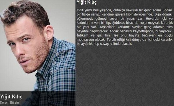 25-годишен, много красив млад човек. Той има много хубаво телесложение. Изключително самоуверен. Многолик, обича да се весели и да се смее. Обича жените и алкохола. Малко тъмен персонаж. Преживените много лоши събития, ще преобърнат живота му. Когато загуби баща си, той ще порасне. Отмъщението и властта са единственото, което му дава сила в живота. Избраният от него тъмен свят винаги ще се бори със светлия.