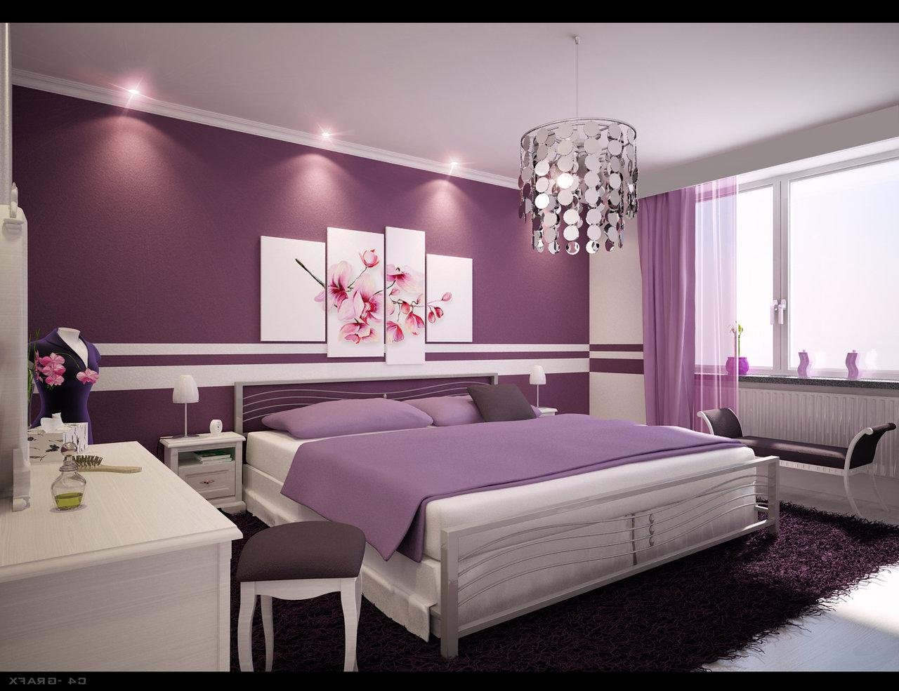 За спалнята... много зависи от цвета на лилавото: №1; №2; №3. В акцент с лилавото бих сложила зелени елементи като в последната снимка.