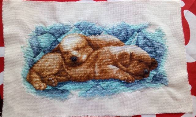 Ние от неделя сме на почивка на Балкана. През деня се разпльоквам на сянка до басейна и си шия гоблена- хем събирам тен, хем удоволствието от шиенето не изоставям.