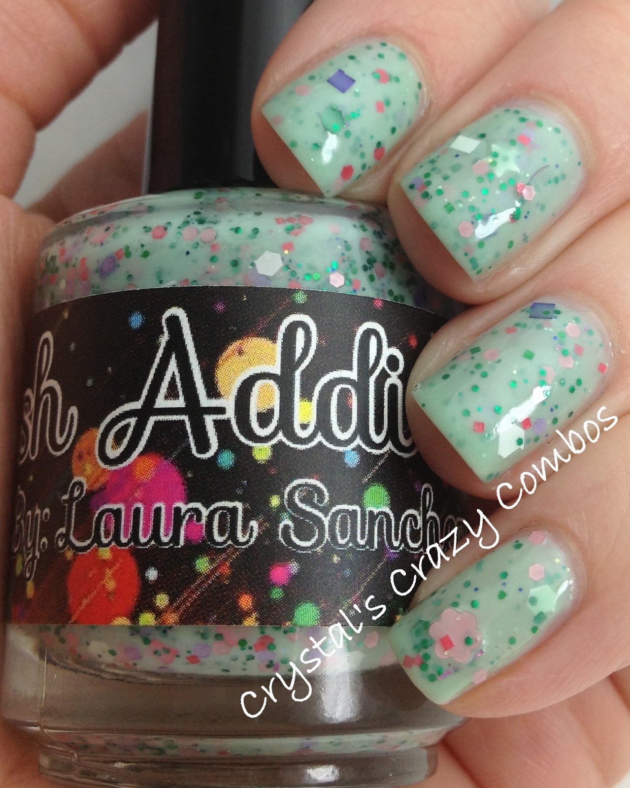 Teal Dimention Sparkle Ruby    Nopi- Believe it, do it Shore Enuff   Polish Addict- In bloom