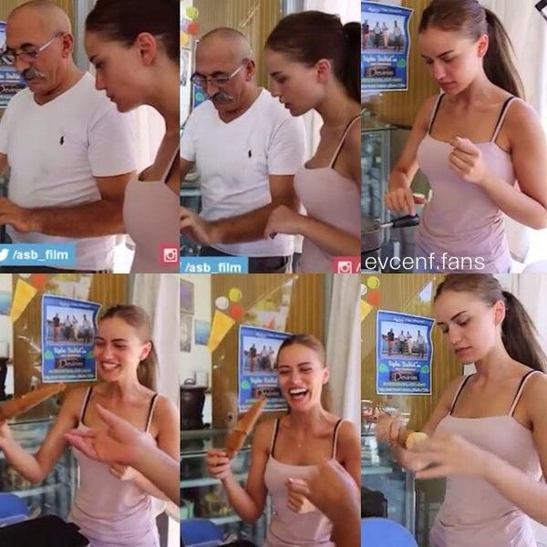 Amena, говорит она что приближается к тому чтобы делать правильный рожок типа совершенствуюсь,мастер на что ей мастер отвечает получилось получилось.На море человек из сета говорит будьте осторожнее ветер..на что бурак типа играет с оператором и ветром))и в конце ты на землю падаешь-оператору. В сценах с мороженым им тоже говорят быть острожными с атрибутами..что он бурак подойдет тогда когда уйдет другой человек.