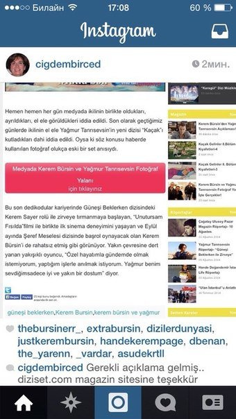 После е написано, че след снимката където бяха написали, че празнуват ролята и и са се хванали за ръце, това много засегнало Керем и семейството му, че се пишат такива лъжи и той отговорил на това така : Не искам да се говори за личния ми живот, а за моята работа. Ние с Ямур, сме просто добри приятели..