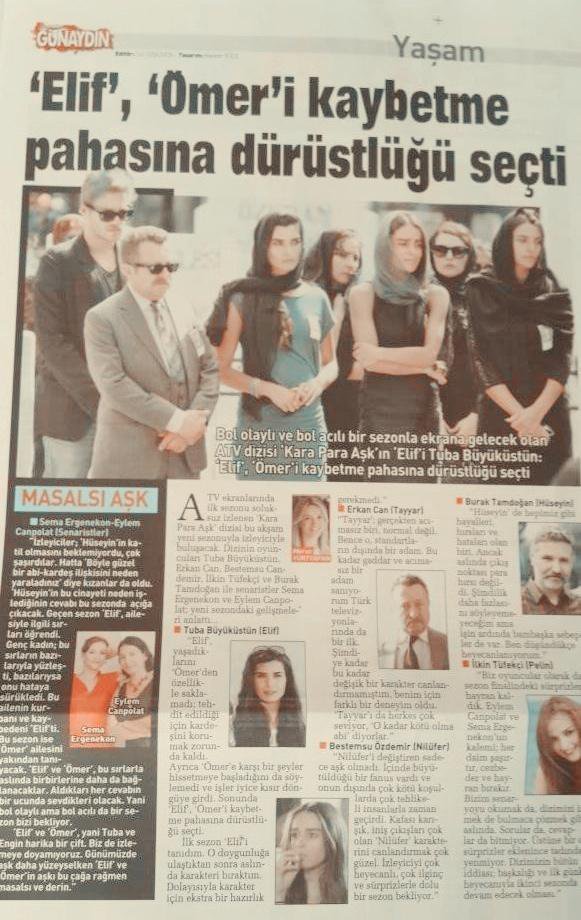 Нас ждёт сезон со многими происшествиями и болезненными событиями. Элиф и Омер, то есть Туба и Энгин - потрясающая пара. Мы тоже не можем наглядеться на них. Сейчас, в современном мире, любовь несерьезна, но несмотря на это любовь Омера и Элиф - глубока и сказочна, как в средние века.