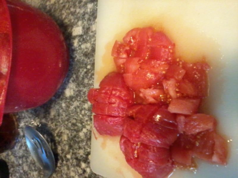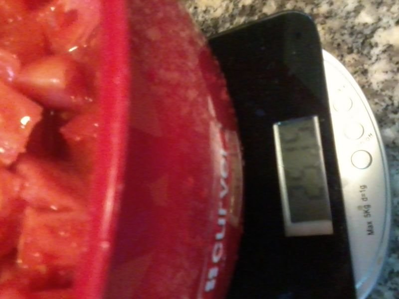 2500грама сурови ,обелени и нарязани домати са засипани с около 1188 грама захар