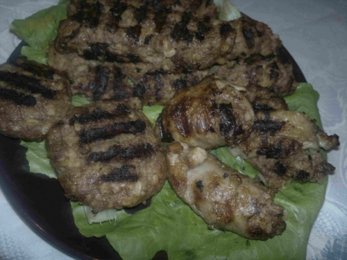 от мене едни мръфки - телешка кайма с булгур (част от тях завити в пилешка кожичка)