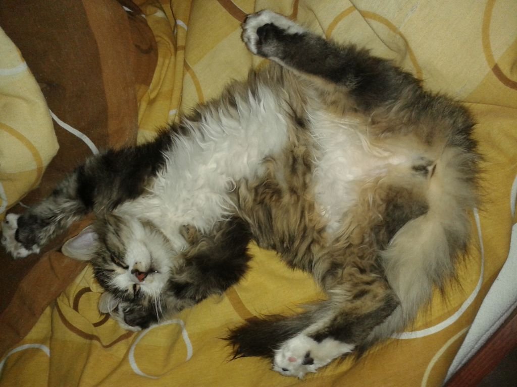 Нали по цял ден са сами, казва, че бебчо постоянно се буди и го закача, "досаждал", мяукал (е, кво да прави, да кудкудяка ли