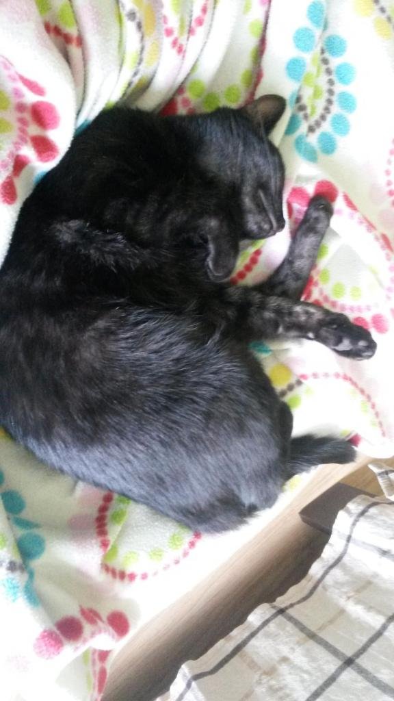 Обаче всяка вечер ляга по гръб и ме привиква за битка.Бием се като селски котараци,хвърчи перушина,чаткат зъби.Бием се,обаче аз се боря с едната ръка,с другата му подкрепям главичката,да не я тресне в пода  Simple Smile.Преди ръцете ми все бяха надрани,но захитрях и си слагам ръкавици от тези,за горещите съдове,от магазина за левче.Битка на макс,кротясва и поемаме към леглото,където спим тримата:аз и мъжа ми на края,Котът се е разплул по средата и не си дава мястото.
