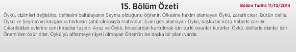 Ойкю узнает про все подлости Шеймы. Она не может сдержать свой гнев. Дефиле будет испорчено разборками между Шеймой и Ойкю. Ойкю, которая хочет вернуть дом, узнает плохую новость. В их дом вселяются новые жильцы. Аяз и Ойкю придумают уловки, чтобы избавиться от новых квартирантов. Ойкю попросит прощения у Онем за дефиле. У Онем, которая не собирается ее прощать, другие планы.