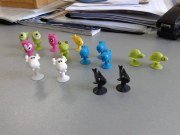 Имаме повтарящи се: Puff-Puff( някакво  чудовище), Piggy(розово прасе). Orby (зелено еднооко), Gloo-Gloo(жълта рибка)