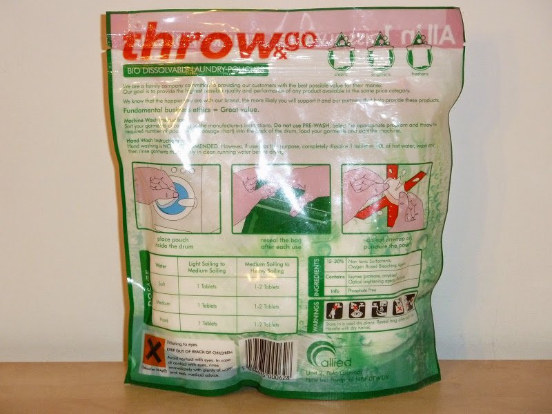 Представлява компактен прах, опакован в индивидуални водоразтворими опаковки. В Англия е 99 пенса, а тук го продават 3,20 лв. за 12 пранета. Дозата е 32 грама на пране, общо опаковката е 384 грама.