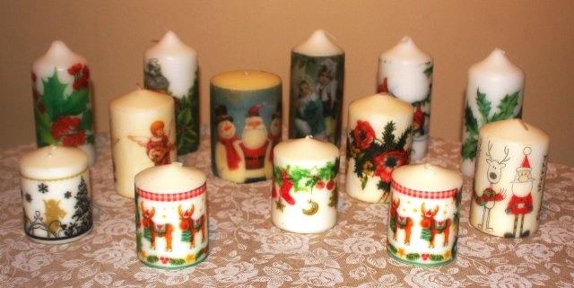 Иначе има и специално лепило за декупаж върху свещи. Ползвала съм го , но там изглеждат по различно.