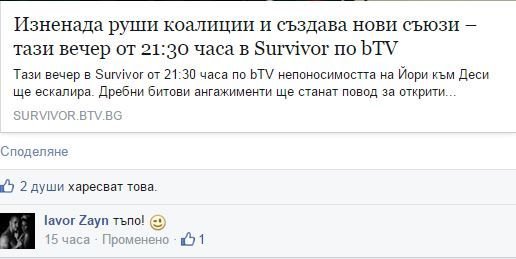 Ако верно стане това което Ваня каза, че ще симулират игра, да я загубят и да изгонят Явор ще е брутално. Не си спомням досега да е правено нещо такова в наш Сървайвър.