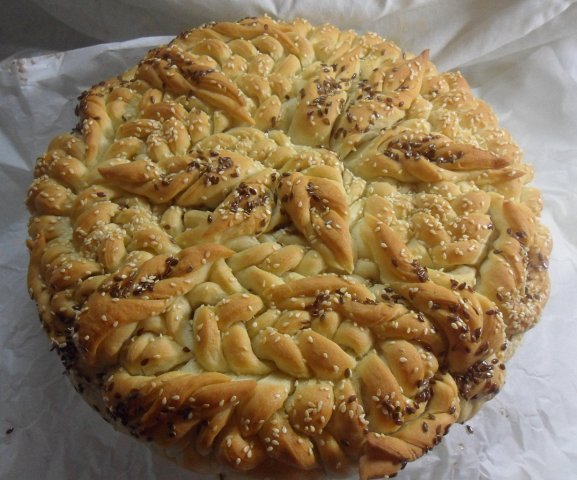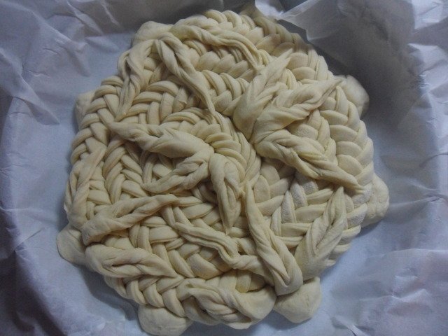 Правих питка за НГ. Малко се оплетох с кифличките, в един момент се ядосах и ги насвятках безразборно, но мисля че резултатът, въпреки всичко, е сполучлив.  Crazy