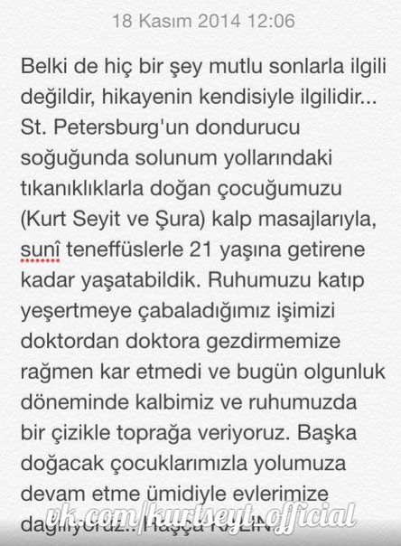 Прощальную речь написал ассистент художника сериала "Курт Сеит и Шура" Мустафа Эрчоглу.