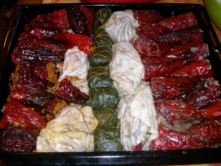 чушки и сърми с боб и с ориз