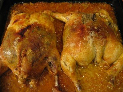 основното-  обезкостено пиле, пълнено с гъби и ориз, върху подложка от кисело зеле:
