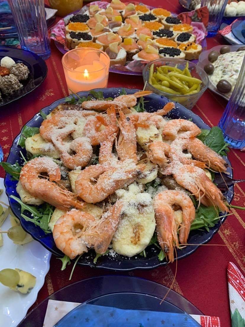 И ние ще сме двамата с мъжа ми. Менюто: салата - зелената италианска от Лидл, с добавки авокадо и репички; основно - скалопини с гарнитура гъби с ориз; баница с късмети; ядки; домашен суджук и някакви сирена, без които и без това не сядам на масата; за десерт някаква купешка торта и шоколад.