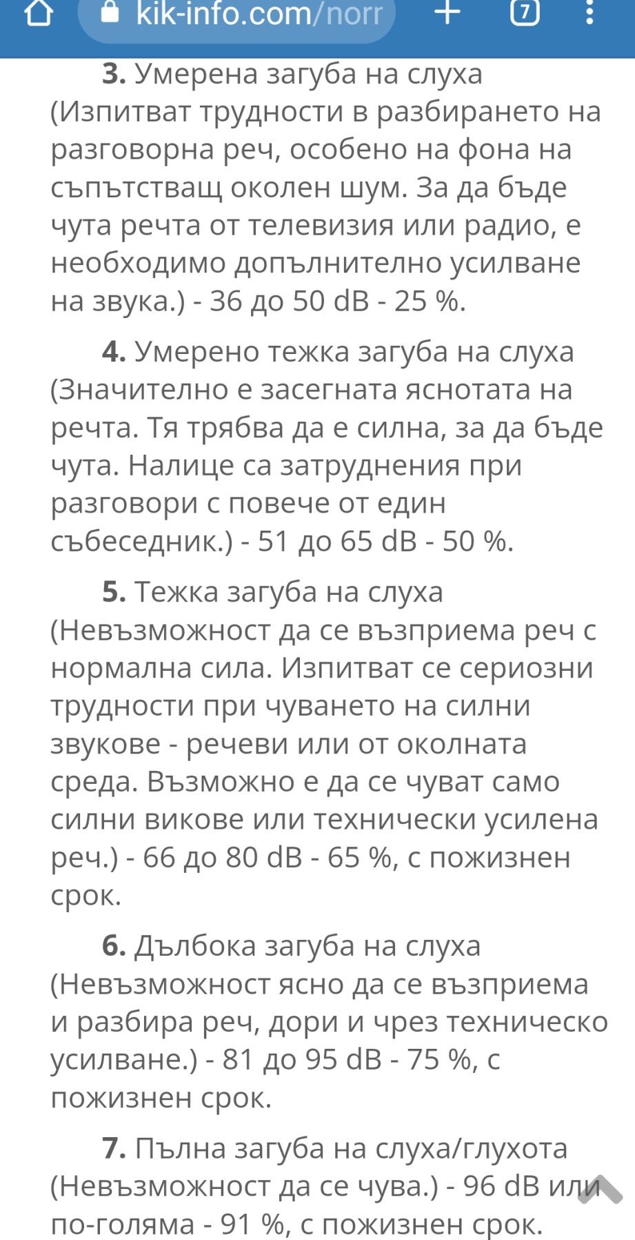 Здравейте, пиша защото майка ми е с намален слух (62dB) и миналата година, когато кандидатстваше за апаратче  гледах и Наредбата за медицинската експертиза, според която тогава, след като апаратчето помага, нямаше как да мине ТЕЛК и да получи процент за намалена работоспособност. Днес обаче ми попадна информация, че има промяна в наредбата, която качвам като скрийншот. Може ли някой да каже как разбира т.4? Така както е написано аз го разбирам, че и със и без апаратче дават 50% или греша? На долу в текста нямаше други пояснения, освен таблицата по която се изчислява оценката на функционалния дефицит на слуховия анализатор