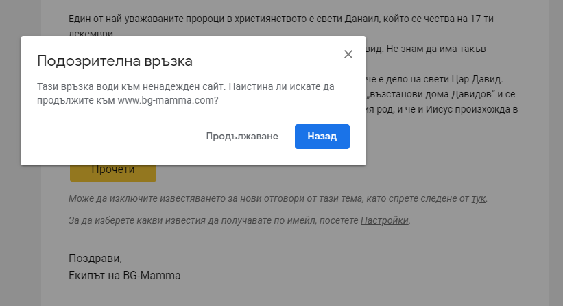 Кликвам на "Изглежда безопасно", след това на бутона "Прочети" и излиза