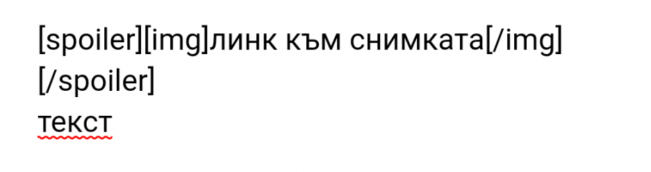 Може ли да ми кажете как да направя така че да мога да пише под скрита картинка?. В смисъл пускам нещо със снимка, пиша си там спойлер за да не е дълъг поста и да пречи, но отдолу под скритата снимка не мога да пиша, отива ми в скритата снимка, а аз не искам да е скрито със снимката, а под нея.