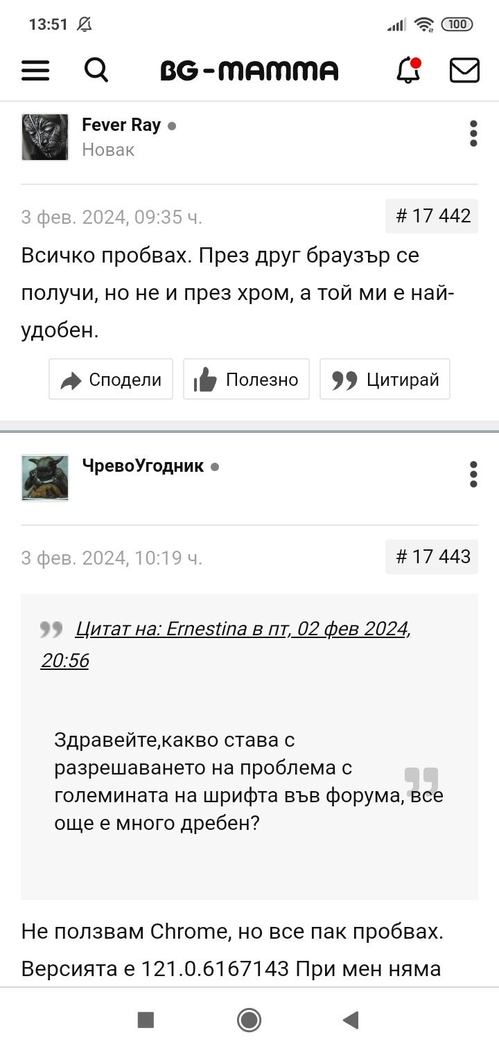 Здравейте,какво става с разрешаването на проблема с големината на шрифта във форума, все още е много дребен?