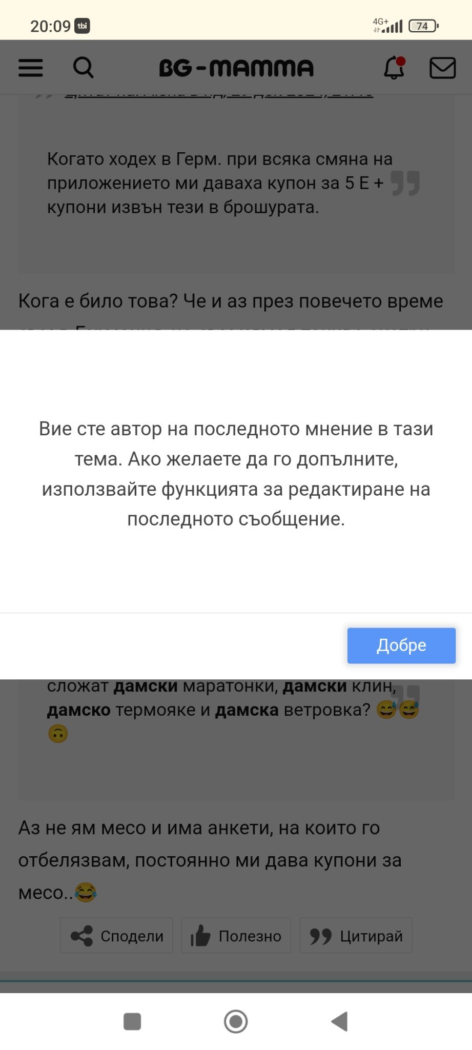За празниците купувам нов телефон на майка ми като в магазина специално го изпробвам на БГ Мамма предвид проблемите с шрифта при мен, не исках и тя да се окаже в същото положение  - всичко е точно, при разцъкване на мнение първоначално е с дребен шрифт а след това с допълнителната опция за отваряне на останалата част си става хубав едър приятен за окото шрифт както си беше и при мен до преди месец. Вкъщи 2 дни го разцъквам по новинарски сайтове и други места и всичко си е наред, подарявам го на майка ми и тя го ползва и всичко му е наред. Но понеже е възрастна жена си иска изгледът да и е като на стария и 10 годишен телефон и синът ми започва да и го персонализира като тегли разни приложения от Гугъл магазин. Изтегля и външен часовник близък до този с който е свикнала, изтегля и някакво приложение за размера на батерията и го слага по средата на екрана в много голям размер, защото наличната в горния десен ъгъл не я виждала, увеличава и шрифтовете на съобщенията и указателя, изтегля и два външни тапета подобни на предишните с които е свикнала, звъненето на аламата също и тегли допълнително... Не помни да е правил друго, освен задължителното за да заработи един телефон... И шрифта на Маммата на купения преди седмица телефон става нечитаем. Днес върна телефона на заводските му настройки като само остави лекото увеличение на шрифта на указателя и на съобщенията от самия телефон и нещата се оправиха. Направих същото с един от моите телефони и шрифта се оправи, но не разбрах кое приложение го бърка, че при мен са повече, а до преди месец всичко си му беше наред. Сега ми е криво да го гледам такъв "гол", но поне не ме докарва до бяс като отворя форума, който ползвам предимно през мобилната версия.