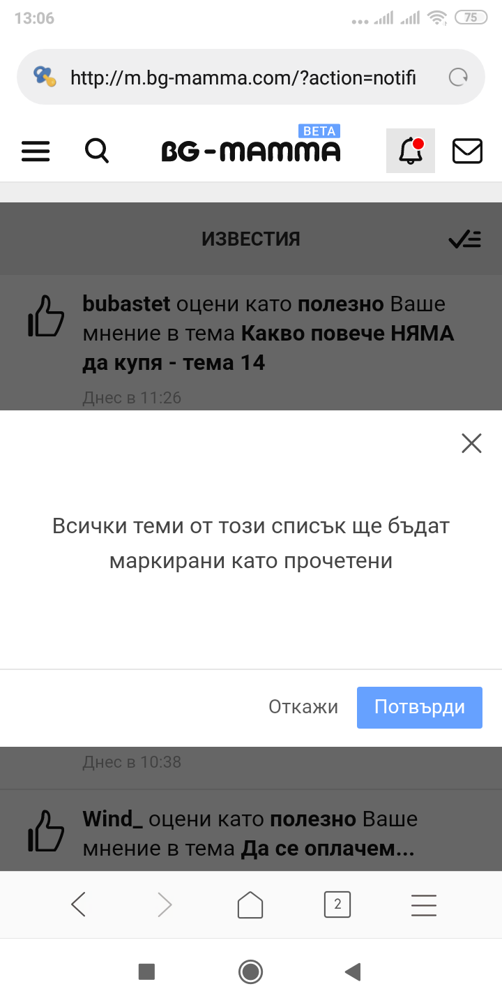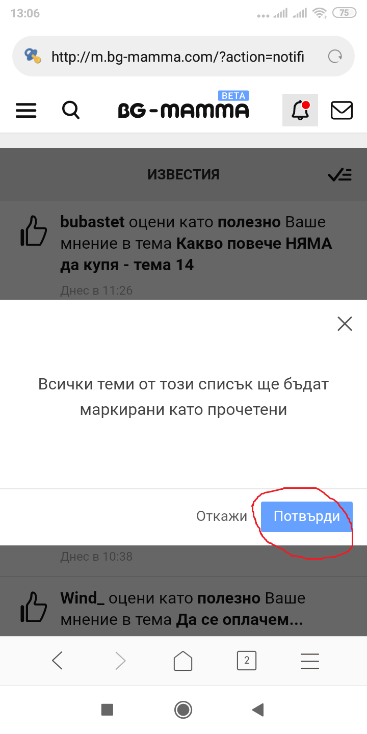 Въпреки, че е в синьо, бутонът Потвърди не е активен. Телефонът е Xiaomi Redmi 6, ползвам блаузъра на телефона, Браузър Версия 10.3.6-g