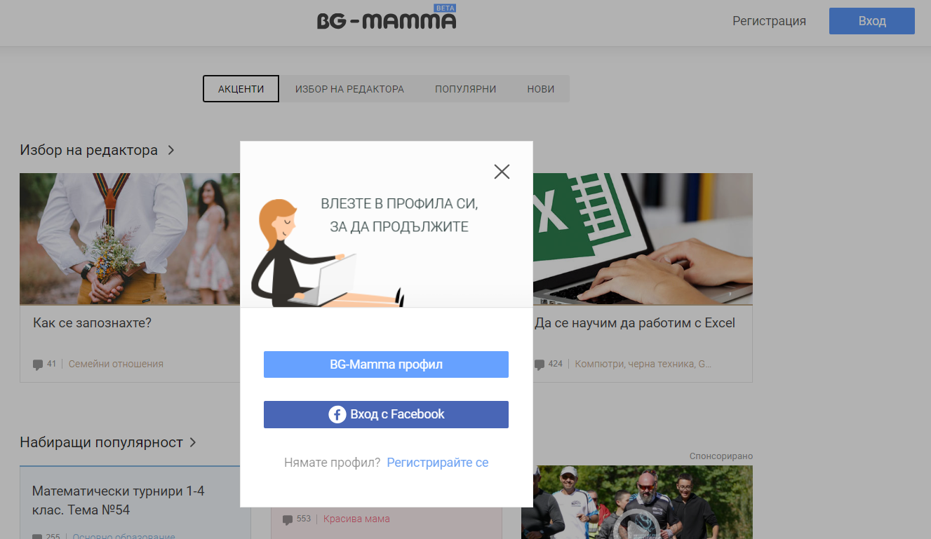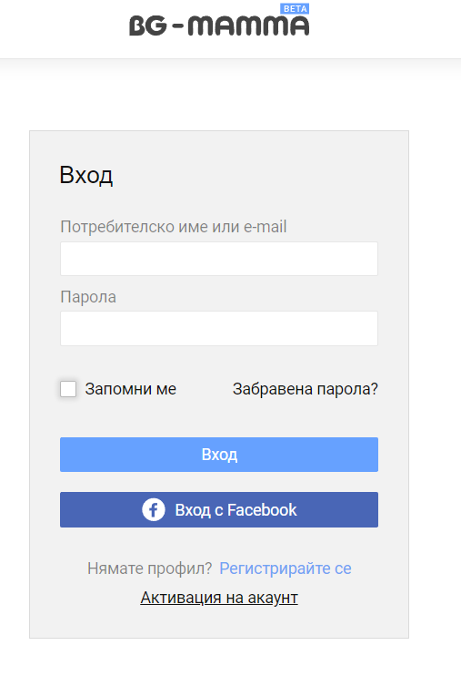 При опит да се логнете, кликвате върху BG-Mamma профил.