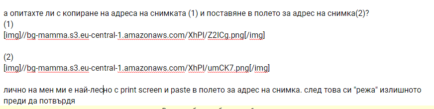 Снимка с адрес от някъде си не мога да сложа - първо трябва да я свалям на компютъра и после с издърпване я слагам в полето за качване на снимка - още по-досадно действие.
