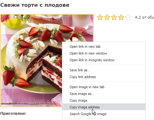 а опитахте ли с копиране на адреса на снимката (1) и поставяне в полето за адрес на снимка(2)?