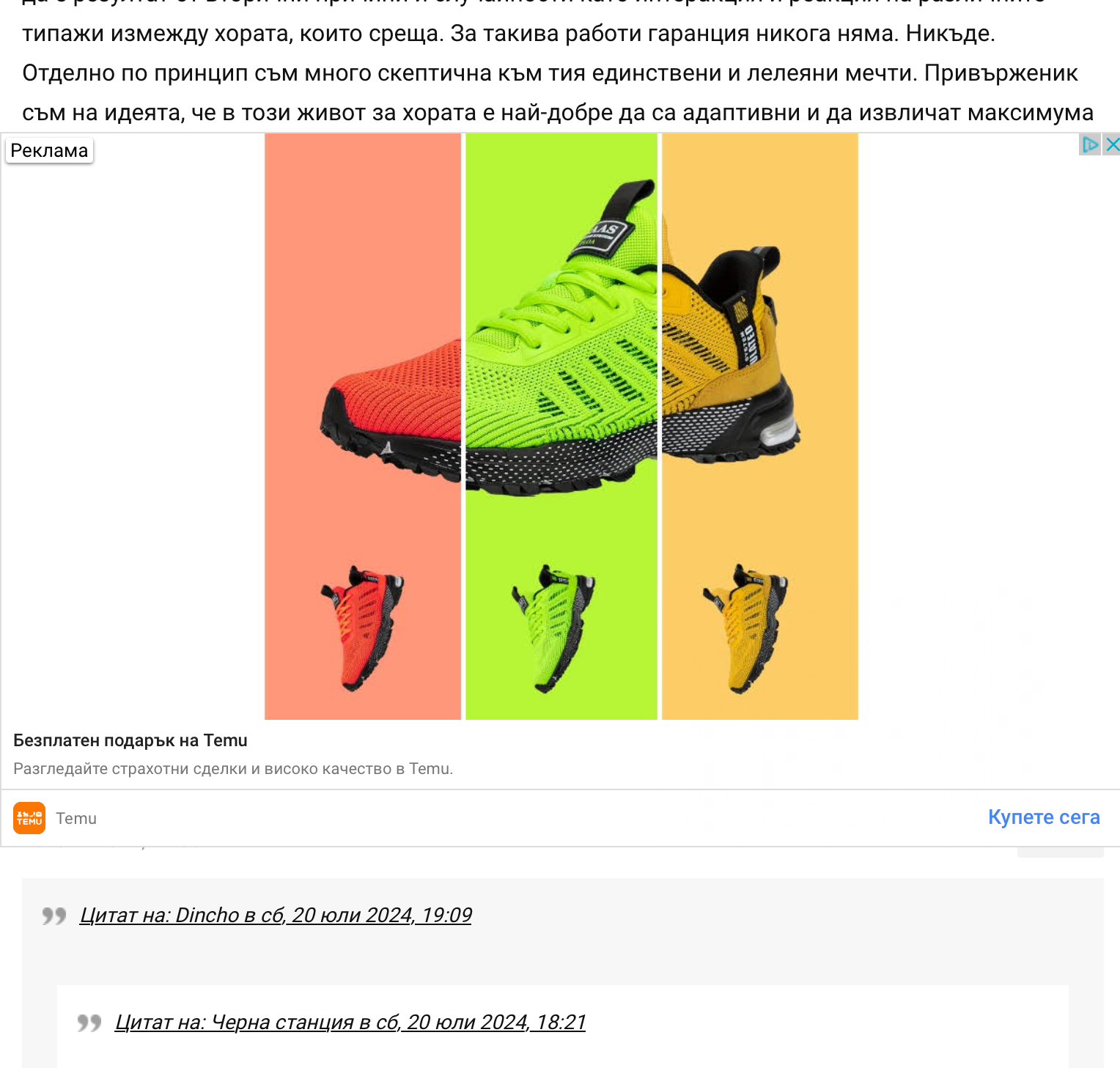 От няколко дни рекламите, които се появяват в темите, скриват последния ред от първото мнение и автора на второто.