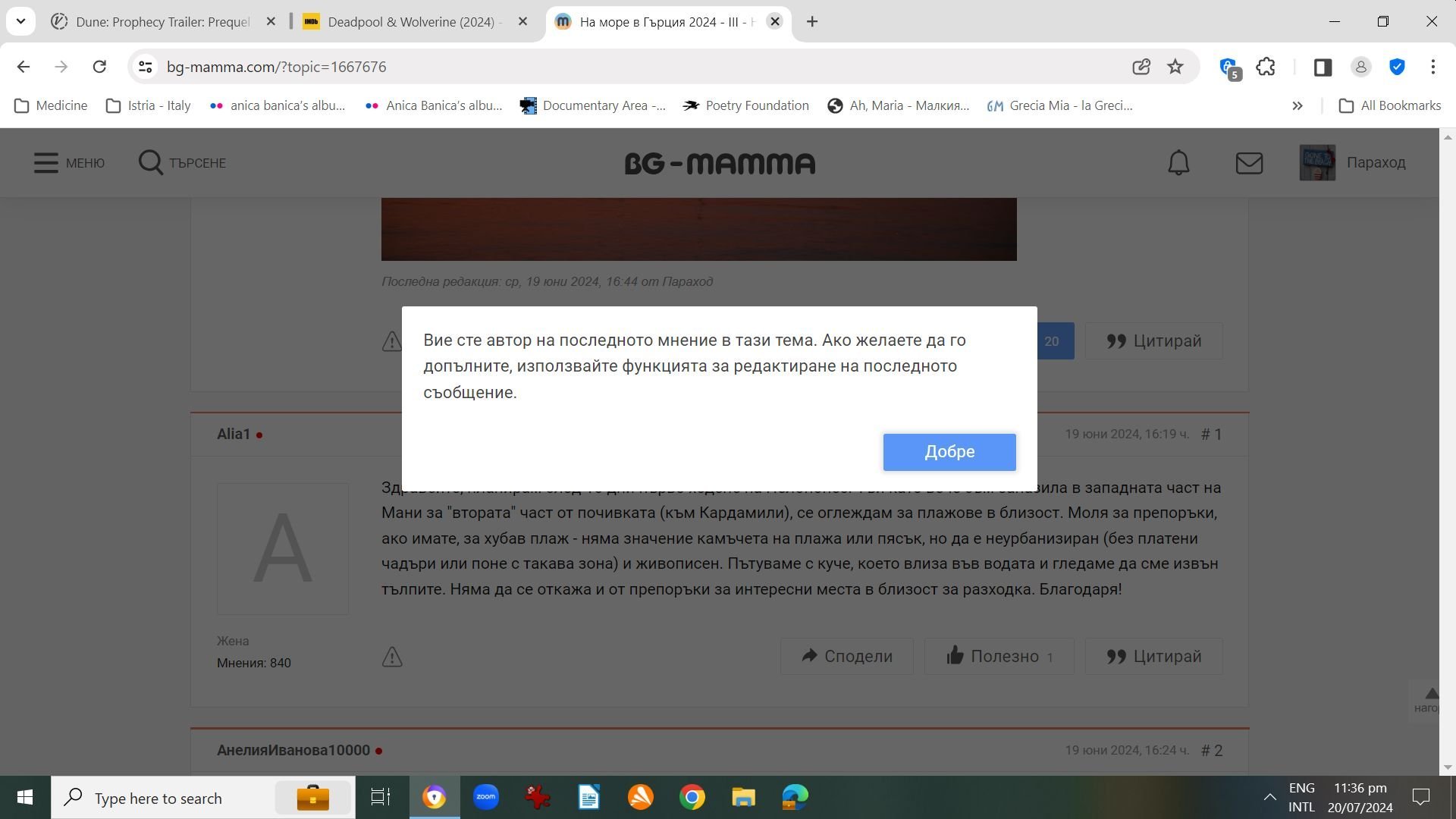 Изобщо защо е необходимо ваденето на цитат, а НЕ публикуването да е обвързано с последно мнение?! Много често на човек му е нужен, за да допълни/прецизира вече публикуван пост.