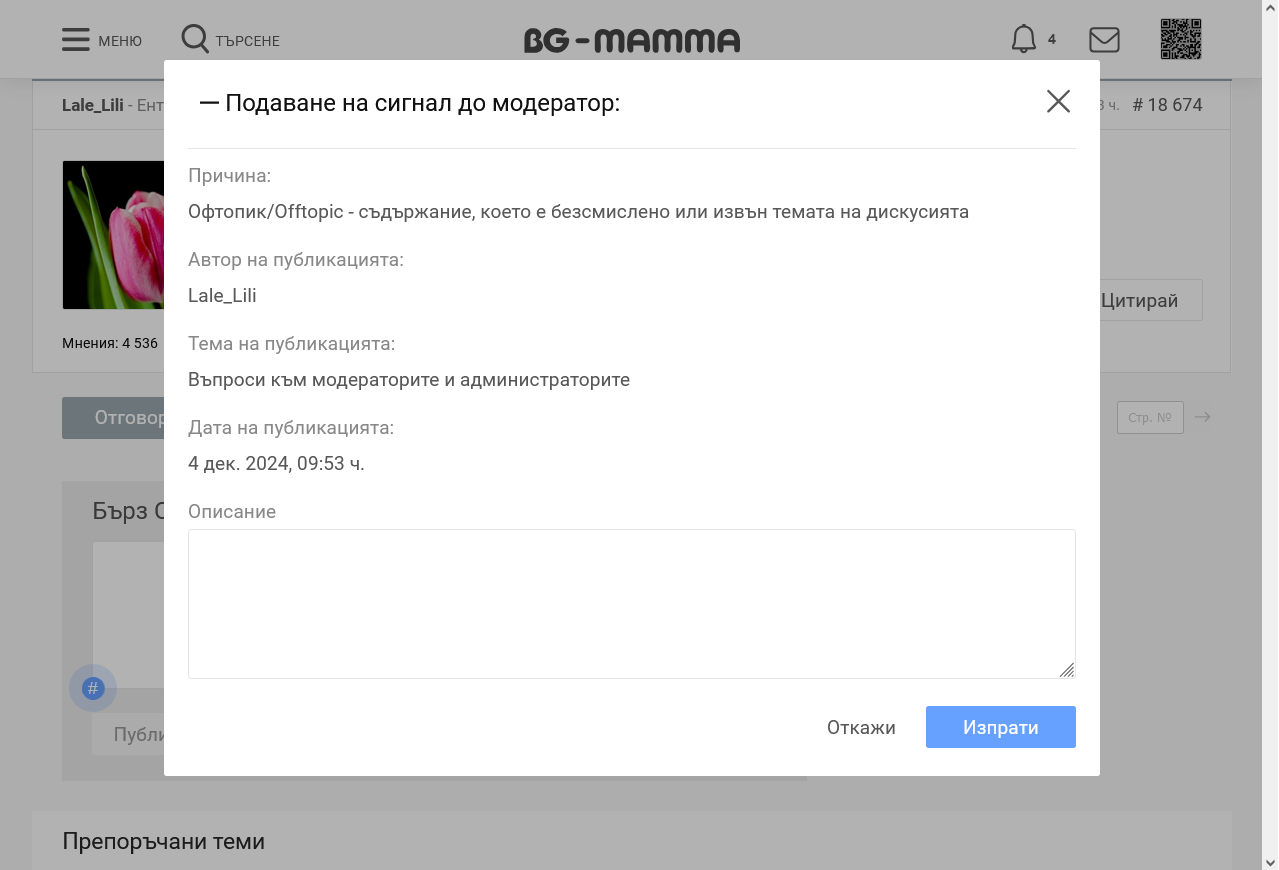 Има проблем с подаването на доклад в мобилната версия. Работим по отстраняването на проблема.