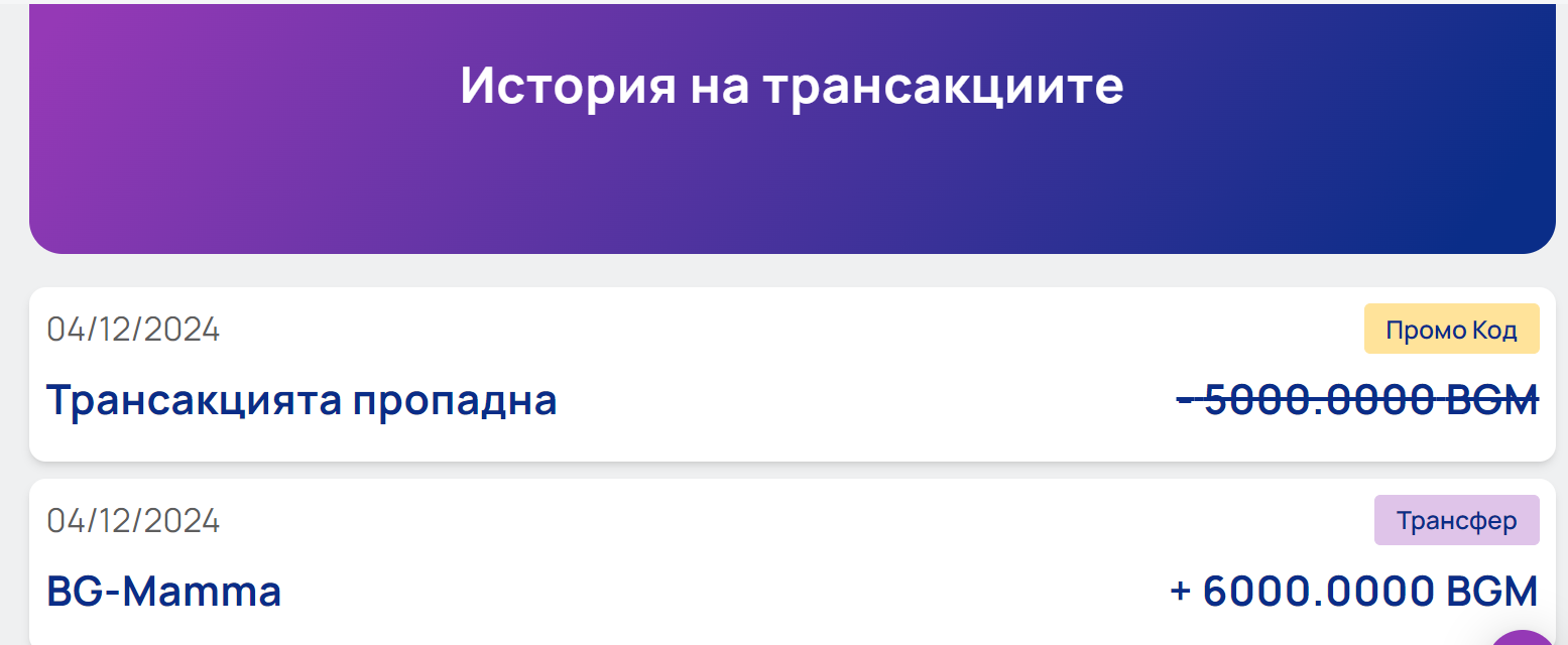 И аз при една от транзакциите не можах да я завърша, но малко по-късно се появиха в профила ваучърите. Изчакайте и ако не се получи, пишете на съпорта - долу в дясно има едно малко пликче. Реагират веднага.