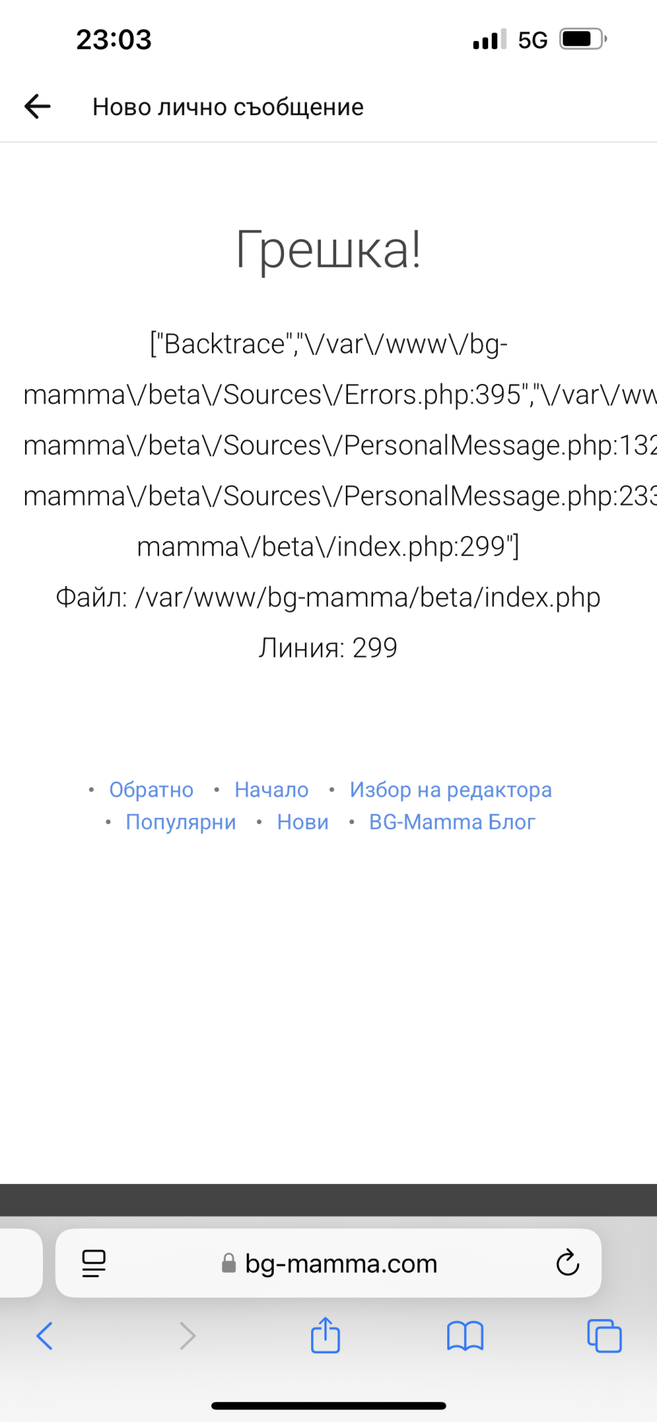 Здравейте , опитвам се да пратя съобщение , но ми дава грешка .. защо ?