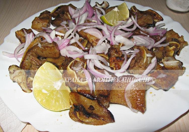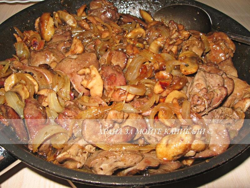 от снощи Дробчета, месо и гъби със сос от нар