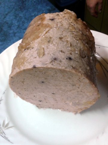 специално за това месо не ползвам шунковара с пружината, а един друг модел - който е с навиване и можеш да регулираш колко да се притиска. Щеше ми се да не е много пресовано, че по принцип си е по-сухо месо.