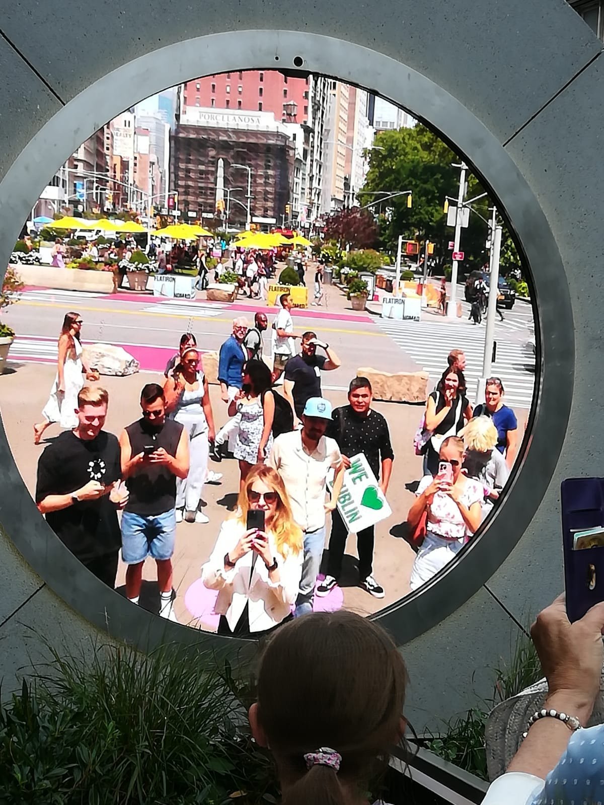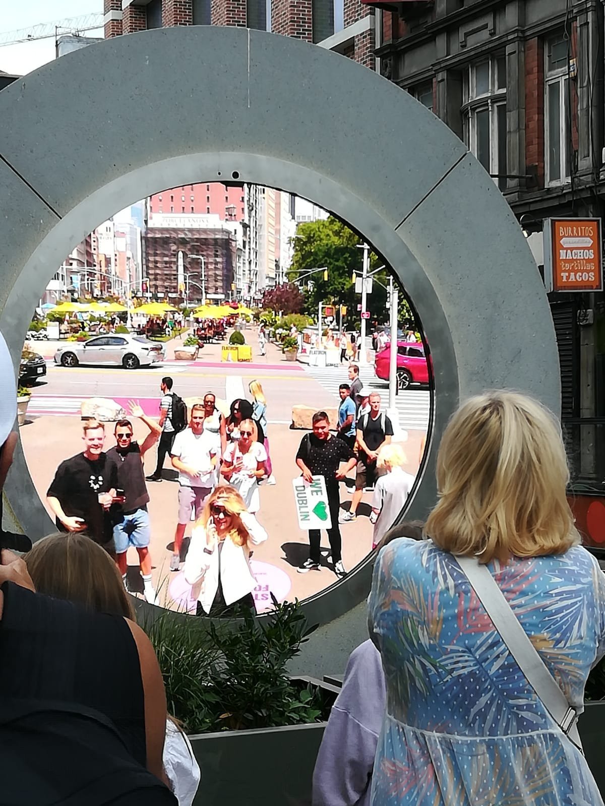 Порталът Дъблин-Ню Йорк, където дъблинчани и нюйоркчани могат са се видят на живо.