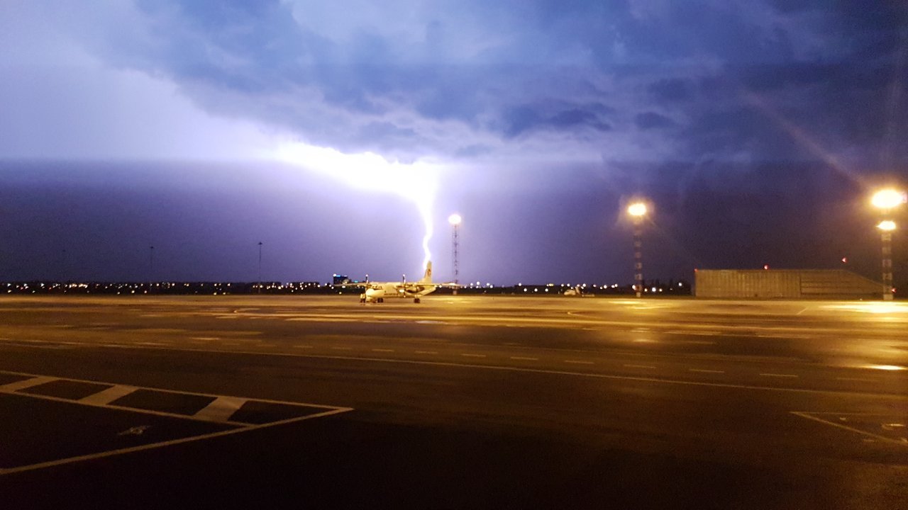 Мълнията е в далечината, направих около 10 снимки на мълнията и тази стана случайно. Имаше закъснение на полетите поради лоши МТО и от скука снимах.