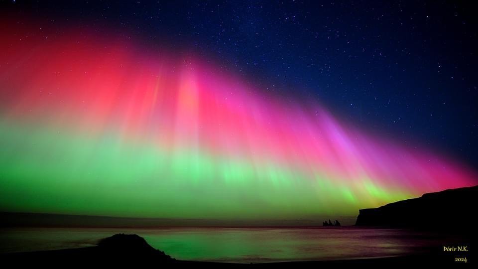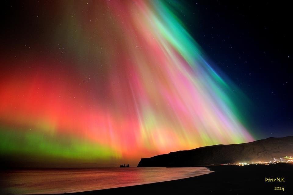 Ето северното сияние от тези дни в Исландия. Снимките не са мои. Проспах го. Simple Smile Но фийда на фейсбука ми е пълен със снимки. Било е впечатляващо са коментарите. Не е нещо, което се вижда често, дори и тук в Исландия. Сиянията обикновено са само зелени или зелено-лилави.