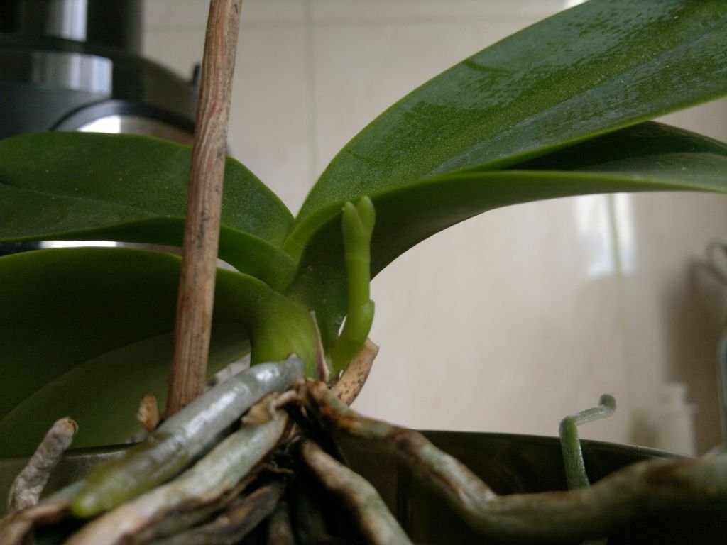 Най-новото ми попълнение (от февруари) имаше 2 цветоноса, последните цветове паднаха юли. Цветоносите изсъхнаха само на върха и не съм ги рязала. Днес видях, че покарват 5 разклонения от спящи пъпки. Тааа яки растения са, щом мен ме издържат за гледач  Joy