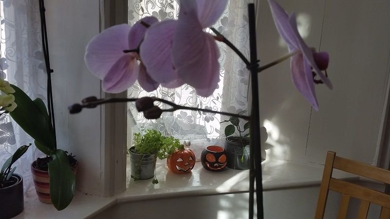 Освен това, на снимката се вижда, че държи орхидеята в пластмасовата, купешка саксия. Аз я посъветвах да пресади. Вие какво ще кажете? Не е ли прекалено тясно там?