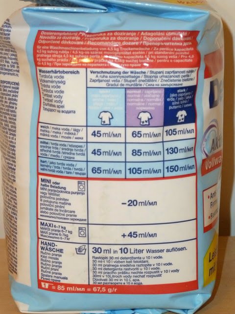 Особено ми е трудно с DM-ския за бяло, защото там има няколко дози и не знам коя да спазвам, колко ли ми е прането и т.н.