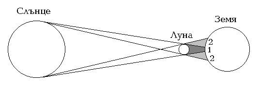 Знаем, че при новолуние - Луната и Слънцето са в съвпад. Тогава, когато луната, Земята и Слънцето застанат на една линия - представи си, че Земята се върти около Слънцето, а луната около Земята и когато Луната застане между Слънцето и Земята така, че да пречидавиждаме Слънцето - то имаме затъмнение: