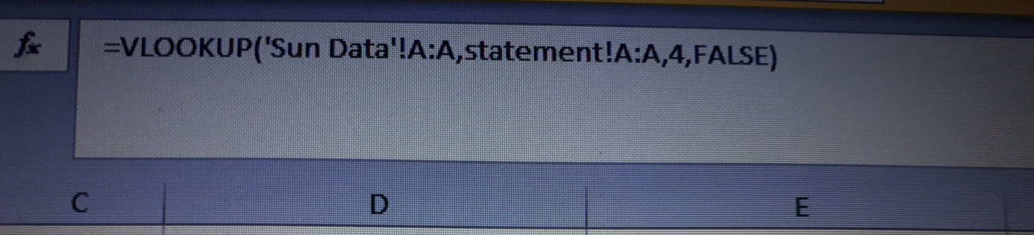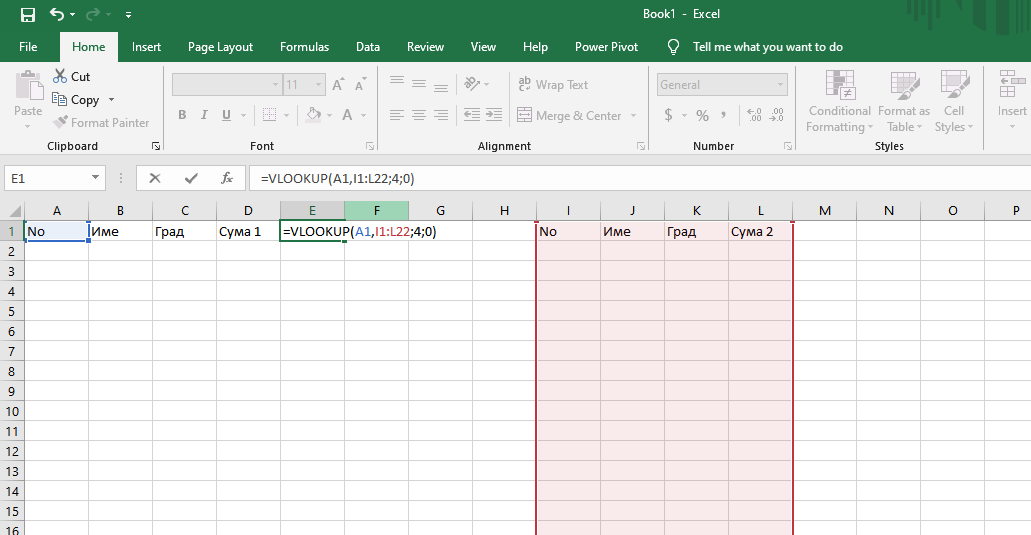 Преди първата запетая е грешно. Трябва да маркирате само една клетка (по която ще търсите). В момента е маркирана цяла област. Например, ако критерият ви за търсене се намира в колона А, то във формулата преди първата запетая, трябва да стои А1.